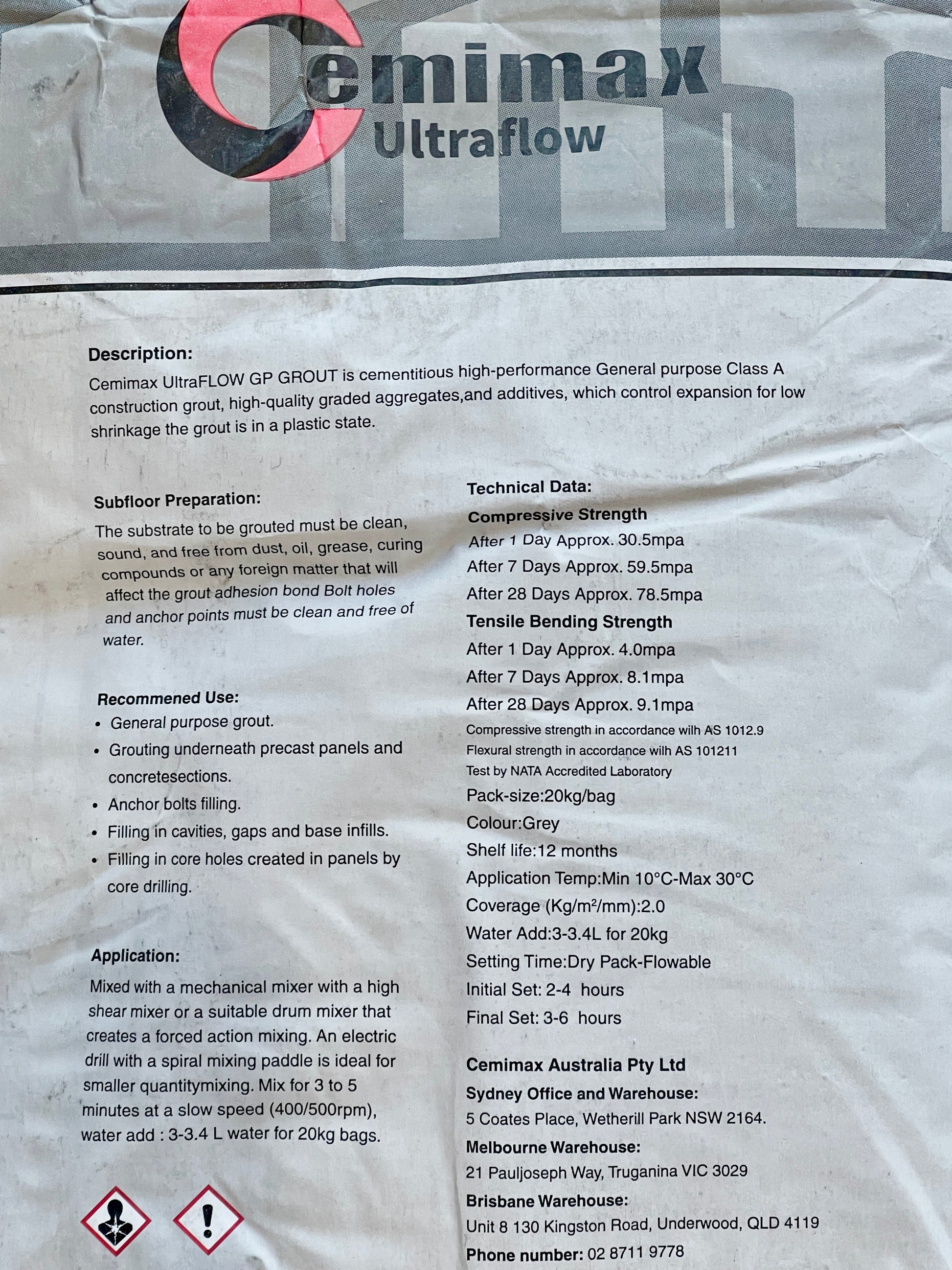Cemimax UltraFLOW GP GROUT is cementitious high performance General purpose Class A construction grout, high quality graded aggregates and additives, which control expansion for low shrinkage the grout is in a plastic state.
